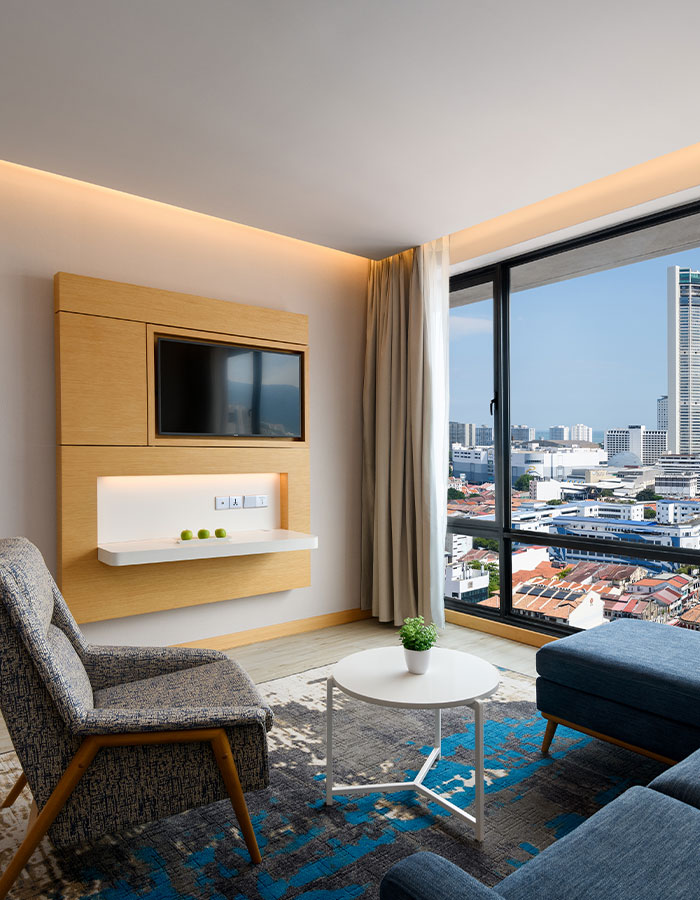 OZO George Town Penang 秉承品牌标志性的睡眠承诺,所有客房均配备助眠床、遮光窗帘、理想室温控制、专用工作区和现代科技设施,让宾客在保持互联的同时,感受到宾至如归的舒适。